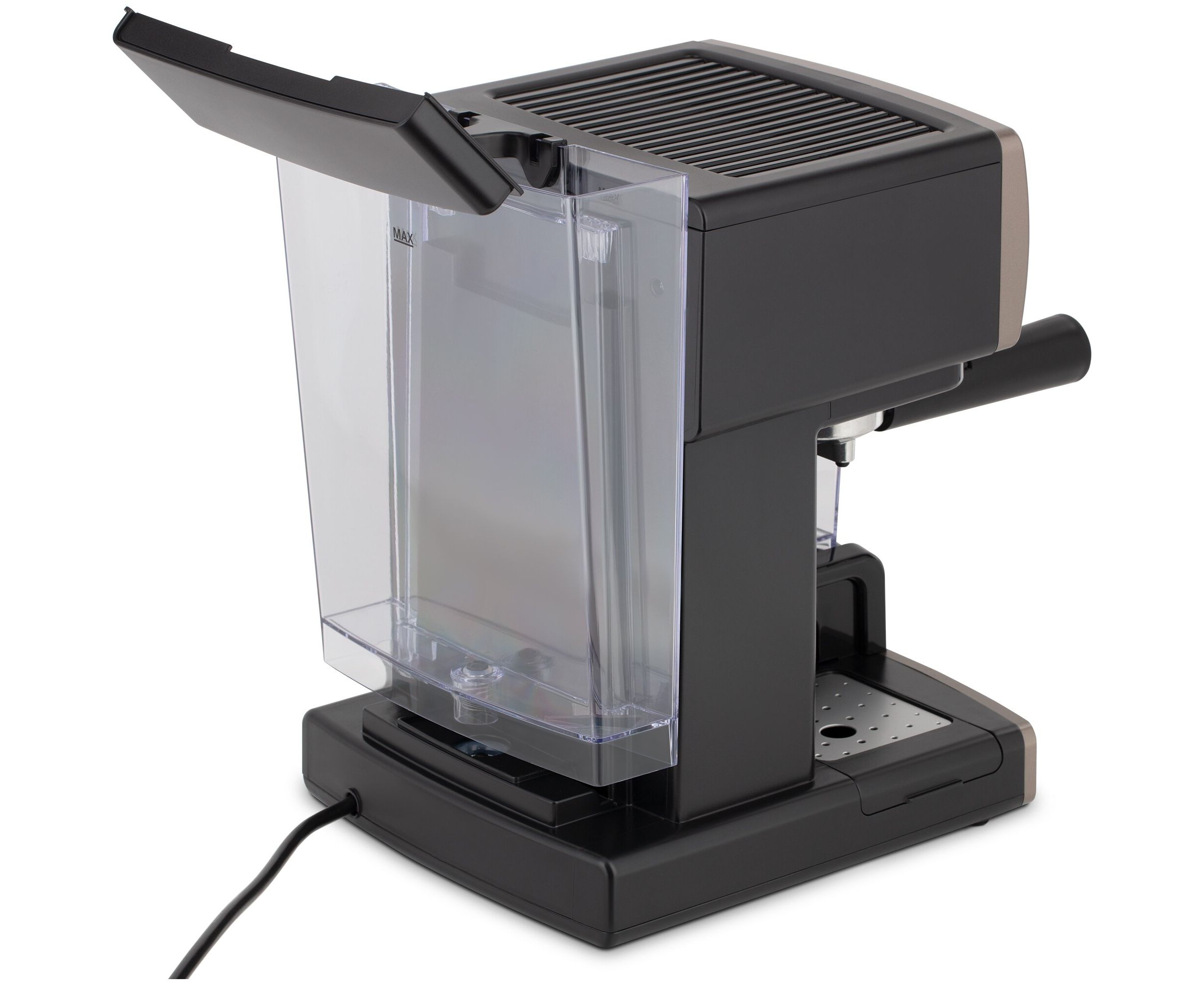 Встроенный капучинатор и резервуар для молока объёмом 300 мл позволяют приготовить ароматную чашечку латте или капучино всего лишь с помощью одного нажатия на кнопку. Дополнительно кофеварка оснащена съёмным лотком для сбора капель и поддоном для подогревания чашек.