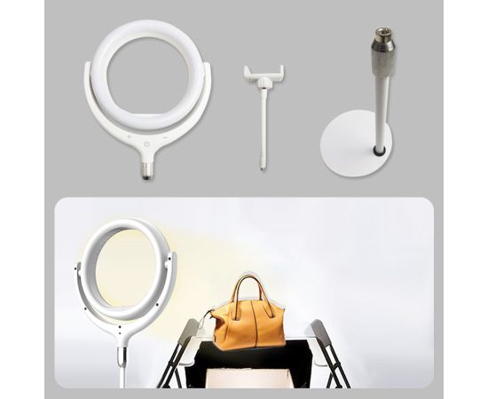 Светодиодная кольцевая лампа для фото и видео съемки Ring Light Kit F-539A — это доступное каждому профессиональное освещение для фото и видео съемки, детальной съемки, дополнительного освещения. Качественный профессиональный кольцевой свет Ring Light Kit F-539A подходит для для визажистов, фотографов, блогеров, салонов красоты, практически всем, кто связан с фото и видео творчеством. Именно такие лампы создают этот потрясающий эффект ангельских глазок на фотографиях. Данная модель имеет оригинальную конструкцию позволяющую легко регулировать наклон лампы. Так же, лампу выделяет сенсорное управление и наличие собственного штатива в комплекте. В свободное от основной работы время, универсальная кольцевая лампа может служить прекрасным осветительным прибором, с регулируемой яркостью, температурой и направленностью свечения, создающий мягкий и комфортный для вашего зрения свет. Данная модель кольцевого света имеет все необходимое для создания ваших красивых фотографий, но при этом очень доступна по цене. Кроме того, лампа работает от USB 5B, поэтому ей легко можно пользоваться где угодно, даже от Power Bank. Лучший выбор для домашнего использования и вспомогательного освещения в студии. Отличный вариант для полезного и ценного подарка.
