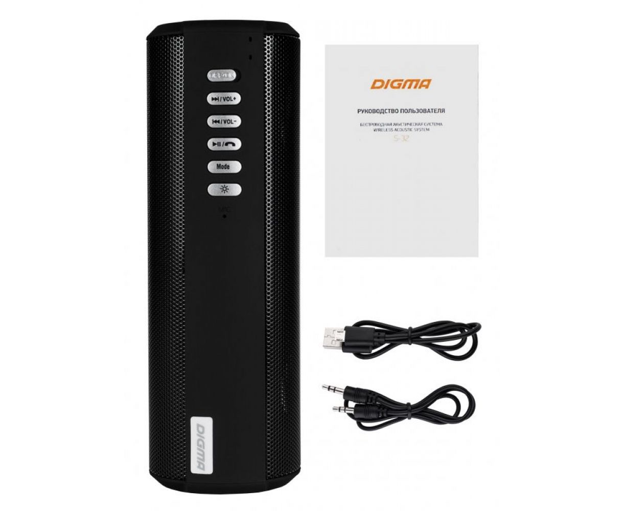 Колонка портативная Digma S-32 черный 6W 1.0 BT 2000mAh (SP326B)