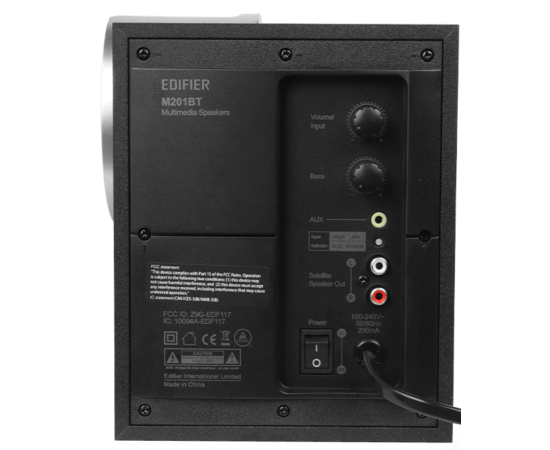 Edifier M201BT - колонки формата 2.1 с общей выходной мощностью 34 Вт. Регуляторы увеличения и уменьшения громкости, выбора входа и регулировки низких частот расположены на боковой панели динамиков для удобства управления и регулировки. Это мультимедийная акустическая система "все в одном", которая объединяет ваши устройства с Bluetooth и без Bluetooth. Вы можете сопрягать все виды устройств Bluetooth по беспроводному каналу, например, компьютеры, смартфоны, планшеты, а также подключать колонки к этим устройствам, если они имеют AUX.