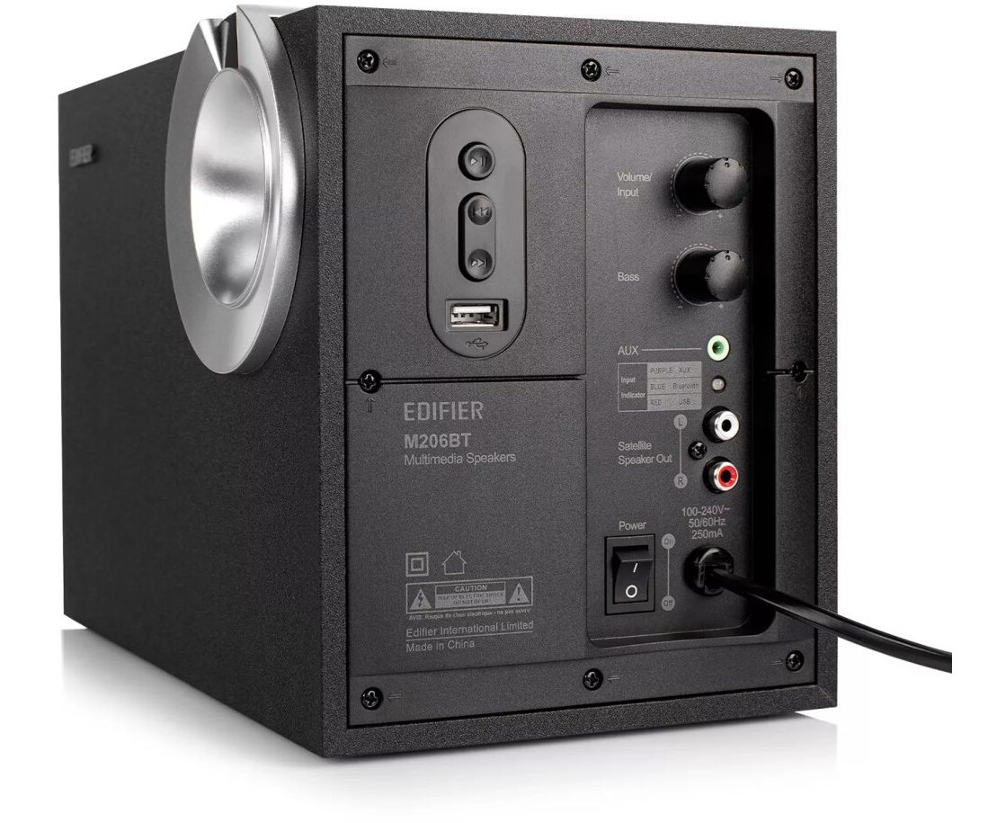 Акустика 2.1 EDIFIER M206BT black Выходная мощность: 34 Вт. 3 динамика всего. Bluetooth 5.0. В комплекте: 3.5мм-3.5мм кабель, инструкция пользователя.