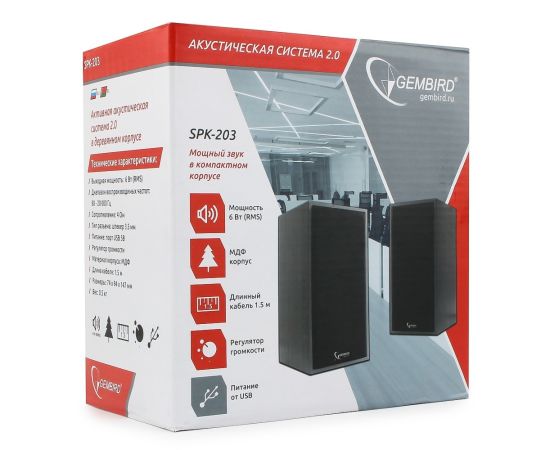 Gembird SPK-203, МДФ, черный ,2х3 Вт, регулятор громкости, USB-питание