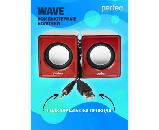 Колонки Perfeo"WAVE" 2.0, мощность 2х3Вт (RMS), красный, USB