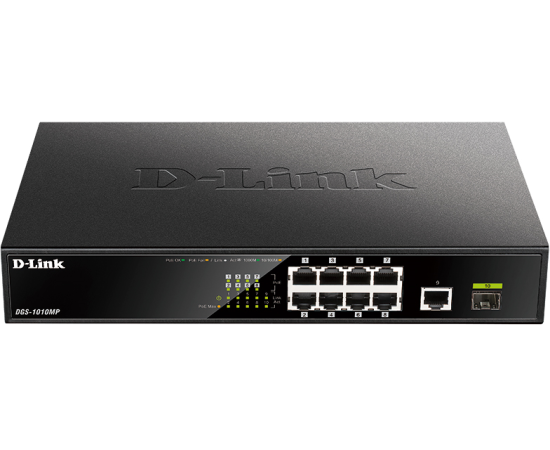 Коммутатор D-Link DGS-1010MP/A1A 9G 1SFP 8PoE 125W неуправляемый