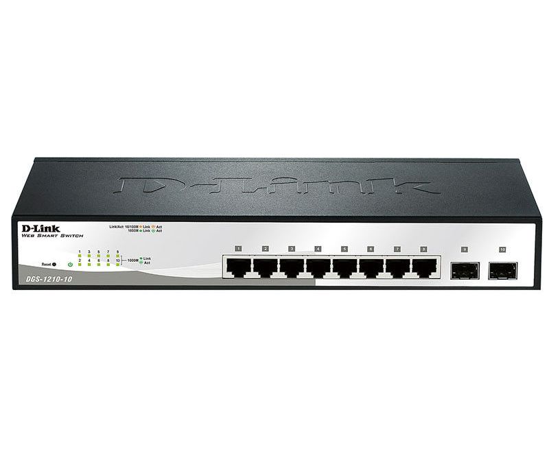 D-Link DGS-1210-10/F1A Настраиваемый коммутатор WebSmart с 8 портами 10/100/1000Base-T и 2 портами 1000Base-X SFP