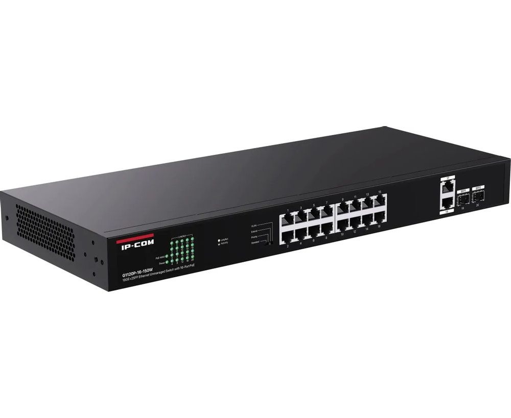 Коммутатор IP-COM G1120P-16-150W 18GE+2SFP Ethernet Unmanaged Switch With 16-Port PoE