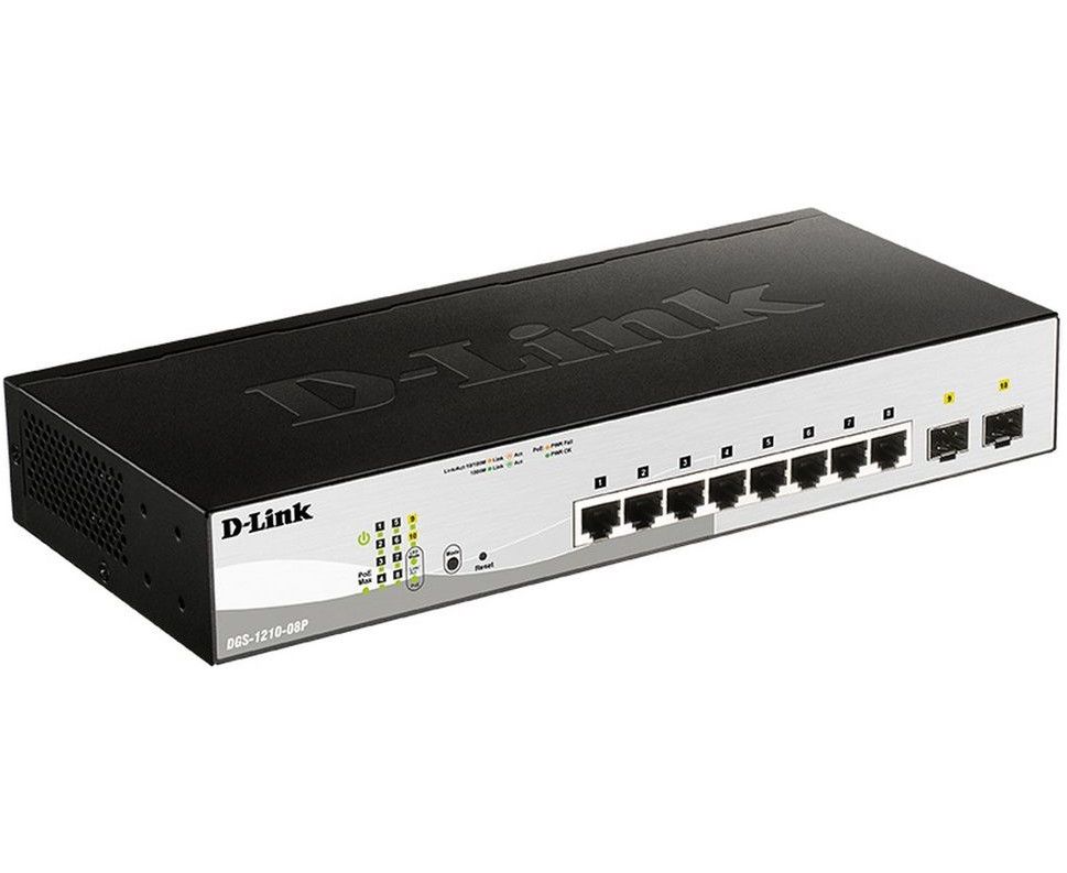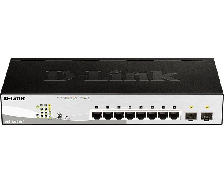 Коммутатор настраиваемый D-Link DGS-1210-08P/G3A (L2) 8x1Гбит/с 2SFP 8PoE 65W