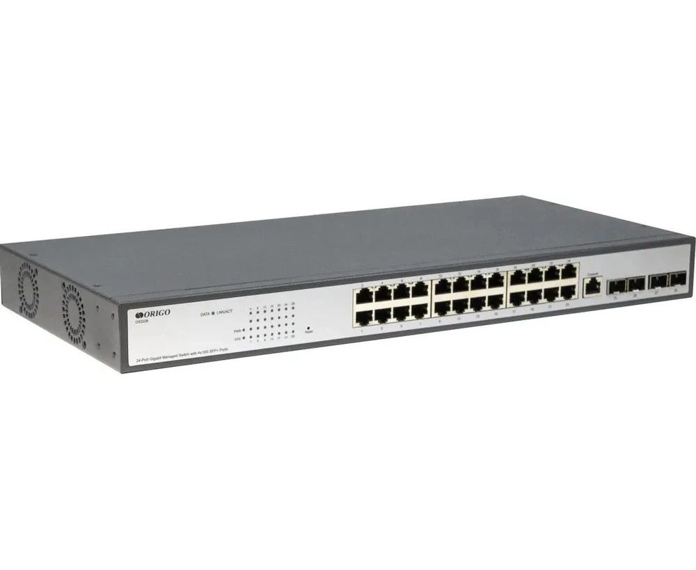 Коммутатор настраиваемый Origo OS2328P/360W/A1A (L2) 24x1Гбит/с 4xКомбо(1000BASE-T/SFP) 24PoE 360W