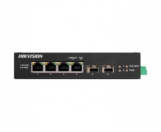 Коммутатор неуправляемый Hikvision DS-3T0506HP-E/HS 4x1Гбит/с 2SFP 3PoE+ 1PoE++ 60W
