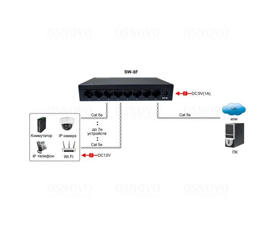 Коммутатор неуправляемый Osnovo SW-8F 8x100Мбит/с