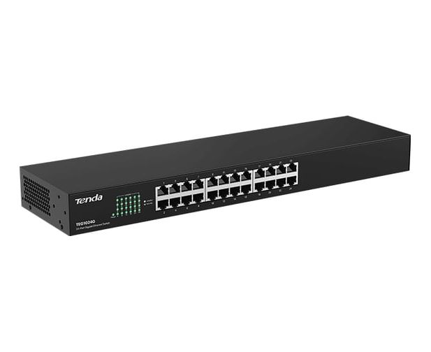 Коммутатор неуправляемый Tenda TEG1024G, 24 порта, 24x1Гбит/с, установка в стойку, металлический корпус