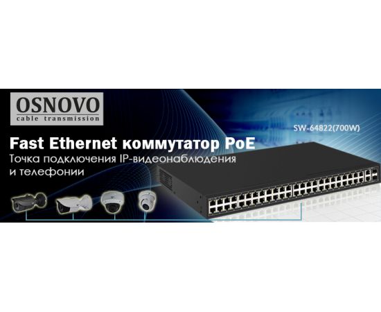 Коммутатор Osnovo SW-64822(700W) (L2) 50x100Мбит/с 2xКомбо(1000BASE-T/SFP) 48PoE 700W неуправляемый