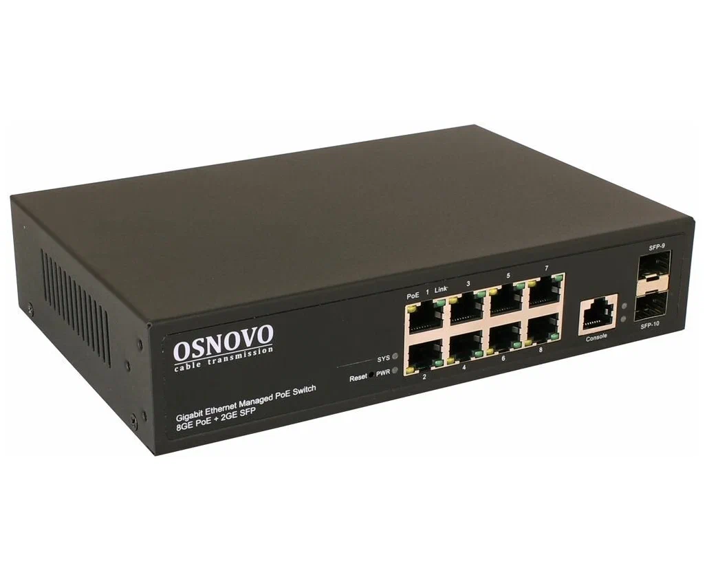 Коммутатор Osnovo (SW-80802/L(150W)) 8G 2SFP 8PoE+ 150W управляемый