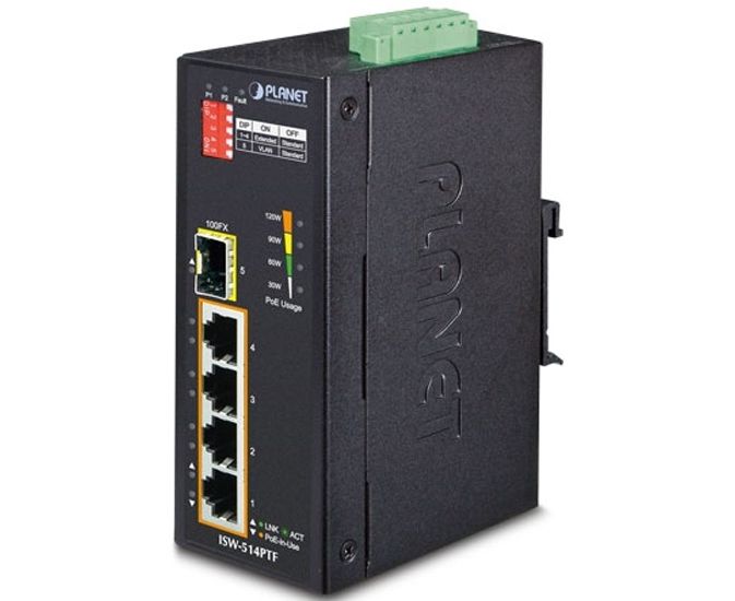 Коммутатор PLANET ISW-514PTF IP30 4-Port/TP + 1-Port Fiber(SFP)