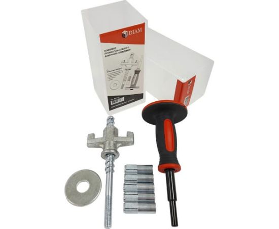 Комплект анкерного крепления Diam 620076 предназначен для быстрого и удобного крепления сверлильных машин, за счет шпильки с крупной резьбой. В комплект входит шпилька длинной 200 мм, прижимная гайка, шайба, удобный пробойник для расклинивания анкеров, 5 анкеров (М12х50мм) для крепления в бетоне. Комплект поставляется в прочном пластиковом боксе, в котором в дальнейшем можно хранить принадлежности для сверления. Данный комплект подходит для крепления всех сверлильных машин TM "DIAM" и большинства сверлильных машин других производителей.