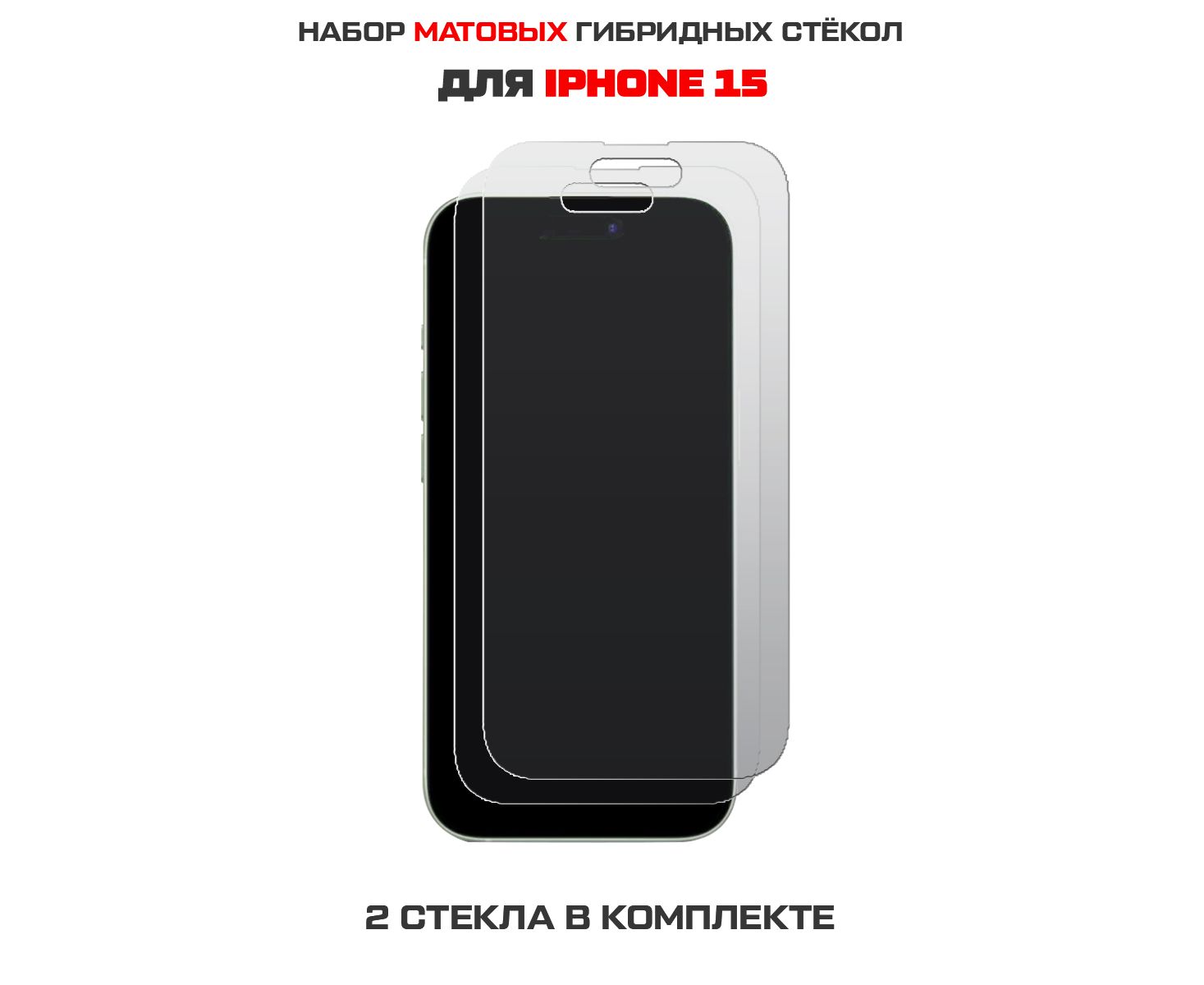 Комплект из 2-х защитных гибридных стекол МАТОВЫХ Krutoff для iPhone 15