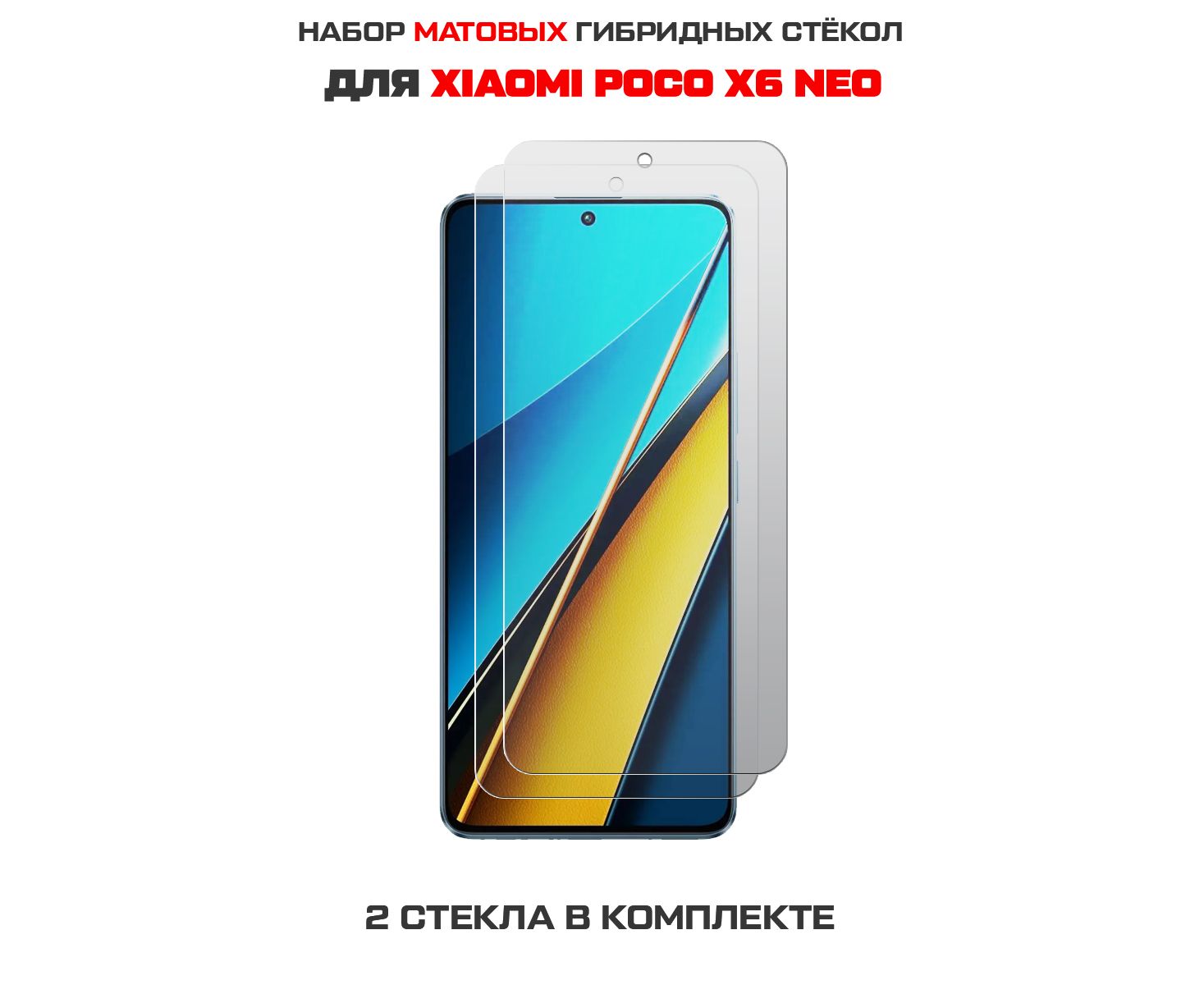 Комплект из 2-х защитных гибридных стекол МАТОВЫХ Krutoff для Xiaomi Poco X6 Neo