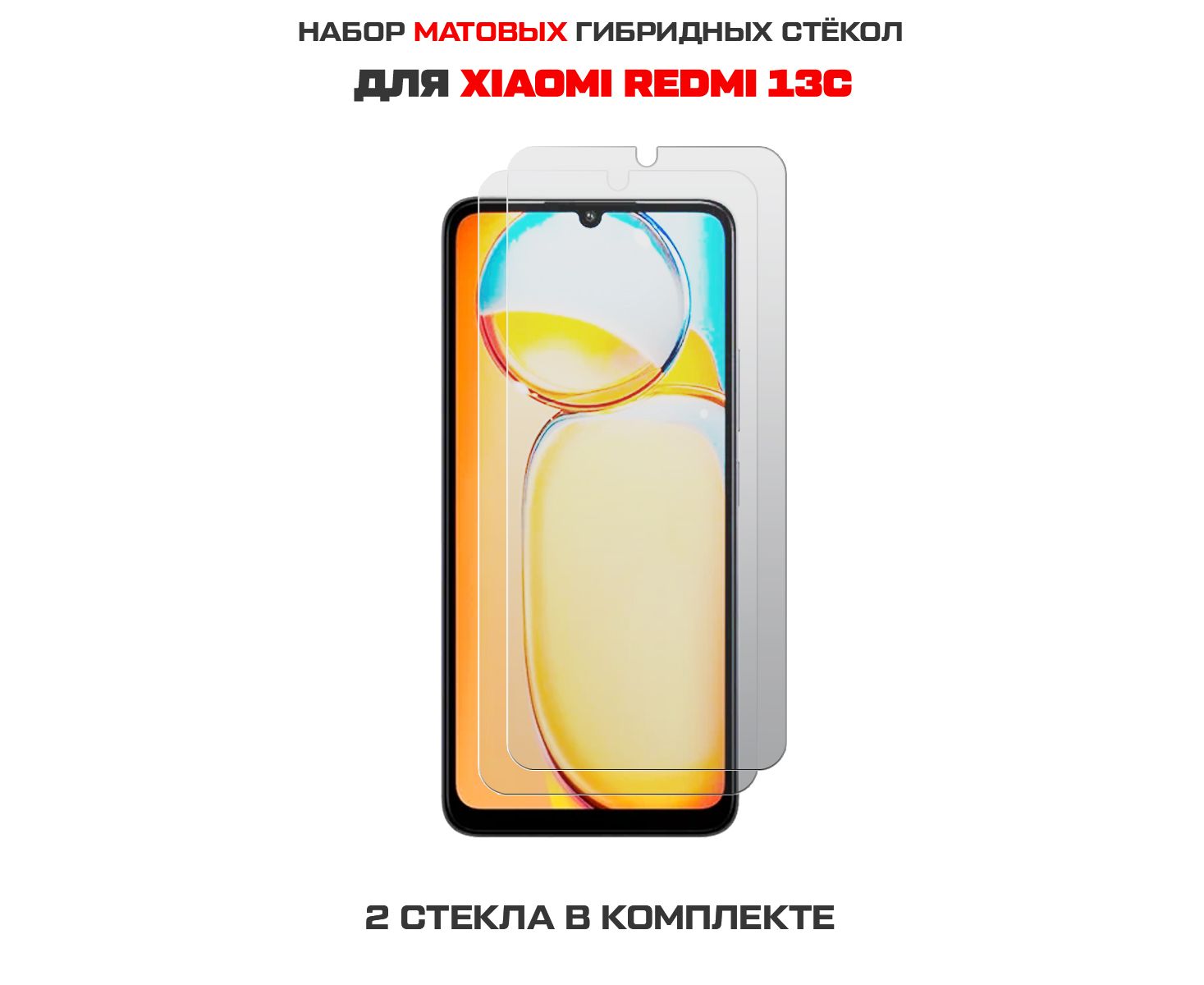 Комплект из 2-х защитных гибридных стекол МАТОВЫХ Krutoff для Xiaomi Redmi 13C
