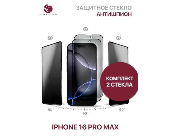 Комплект из 2 шт защитное стекло антишпион для iPhone 16 Pro Max полноэкранное, с рамкой (Айфон 16 Про Макс)