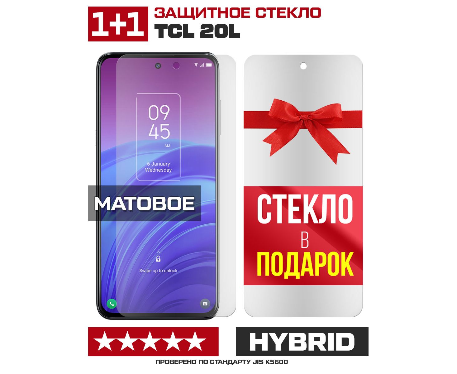 Комплект из 2-x защитных гибридных стекол МАТОВЫХ Krutoff для TCL 20L
