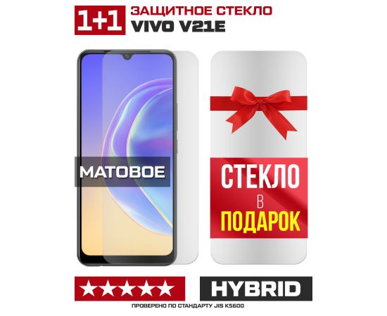 Комплект из 2-x защитных гибридных стекол МАТОВЫХ Krutoff для Vivo V21e