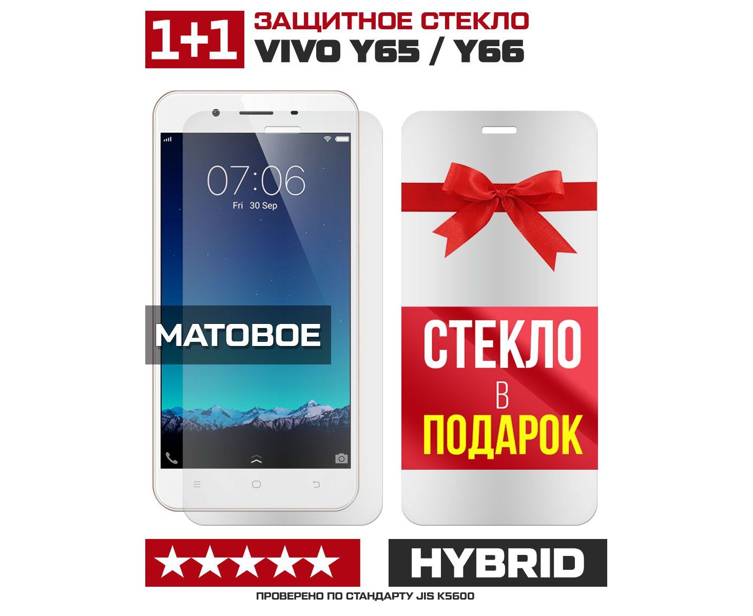 Комплект из 2-x защитных гибридных стекол МАТОВЫХ Krutoff для Vivo Y65/Y66