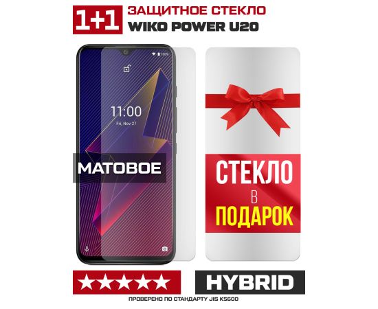 Комплект из 2-x защитных гибридных стекол МАТОВЫХ Krutoff для Wiko Power U20