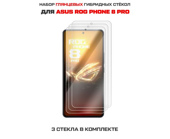 Комплект из 3-х защитных гибридных стекол Krutoff для Asus ROG Phone 8 Pro