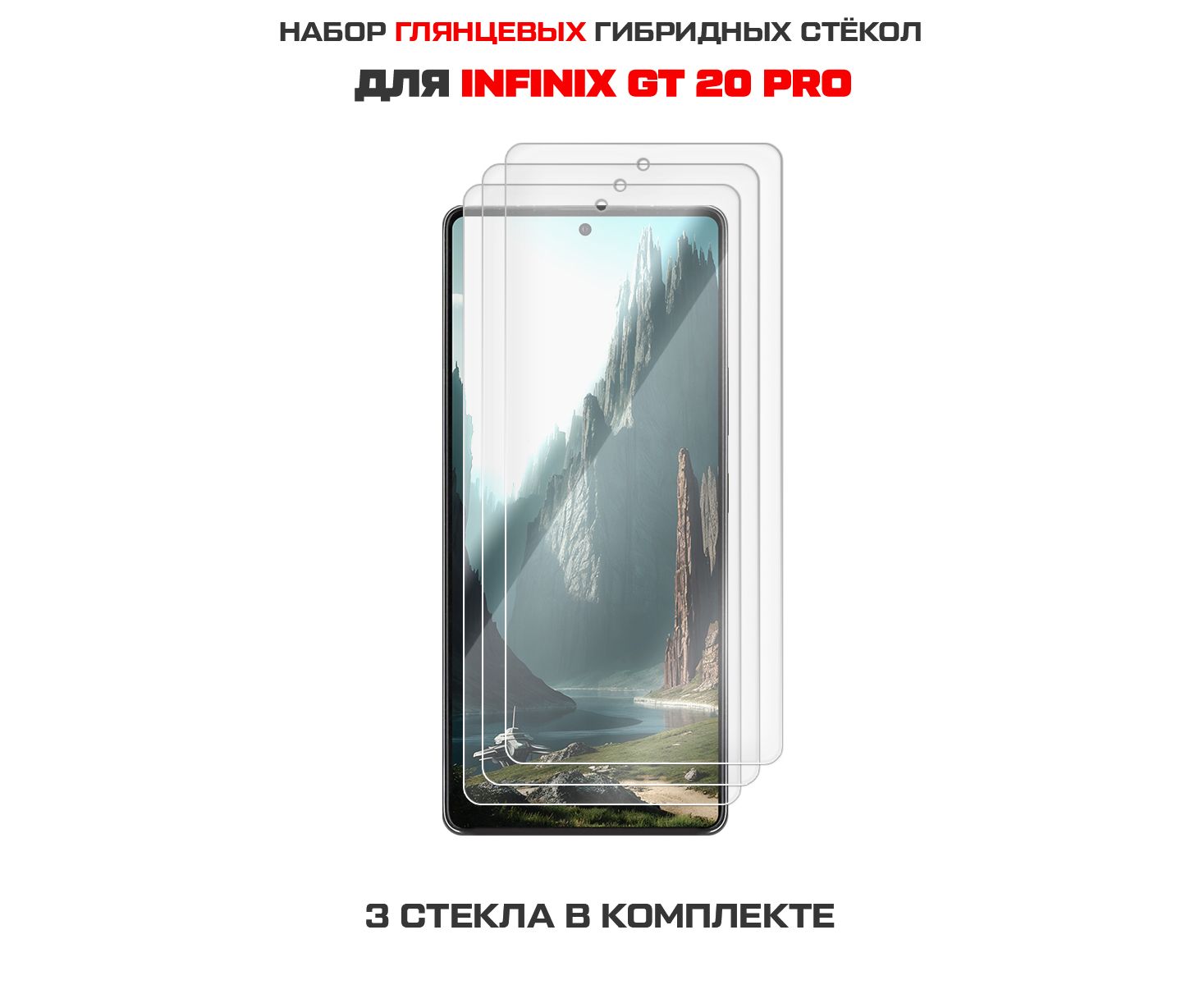 Комплект из 3-х защитных гибридных стекол Krutoff для INFINIX GT 20 Pro