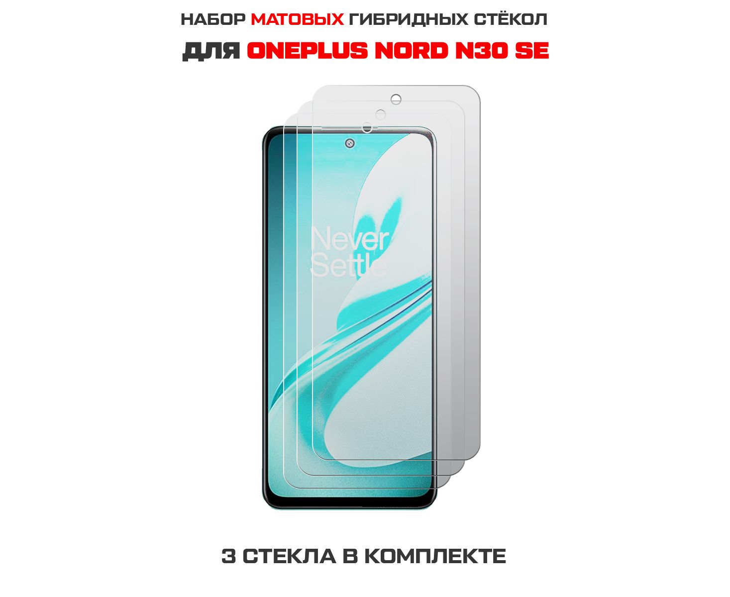 Комплект из 3-х защитных гибридных стекол МАТОВЫХ Krutoff для OnePlus Nord N30 SE