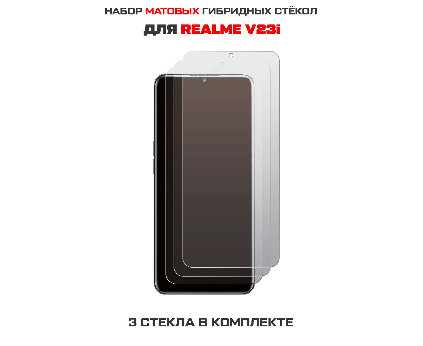 Комплект из 3-х защитных гибридных стекол МАТОВЫХ Krutoff для Realme V23i