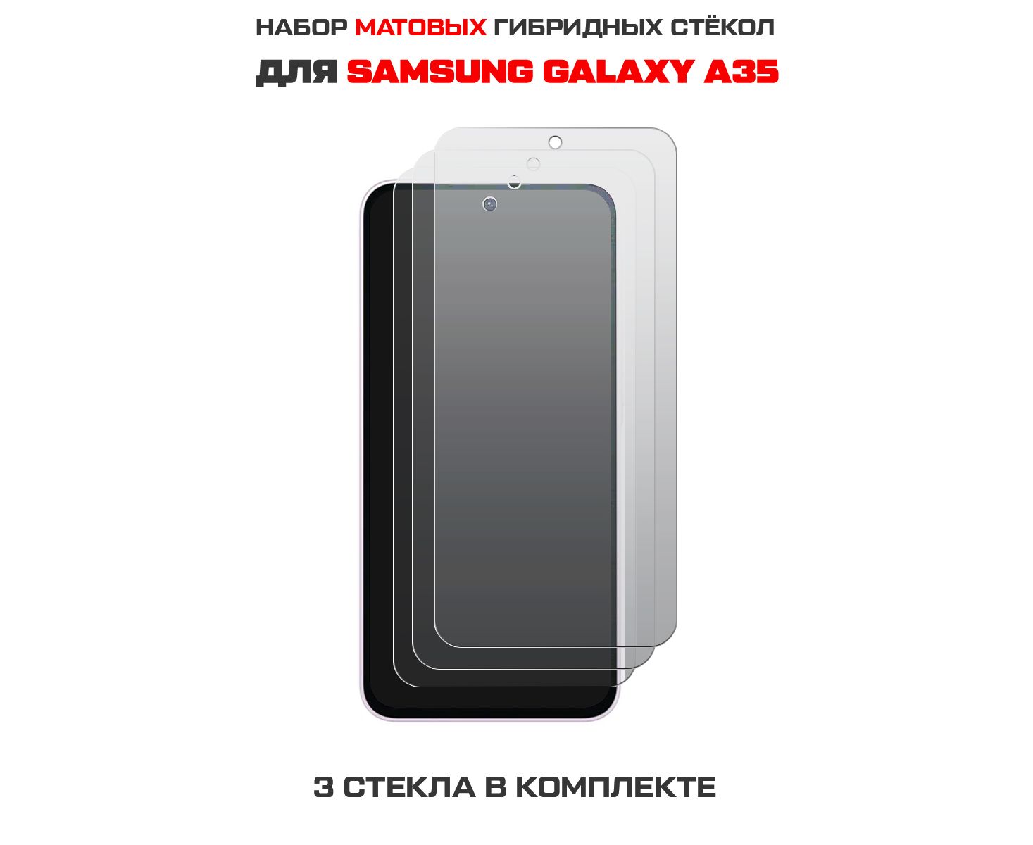 Комплект из 3-х защитных гибридных стекол МАТОВЫХ Krutoff для Samsung Galaxy A35
