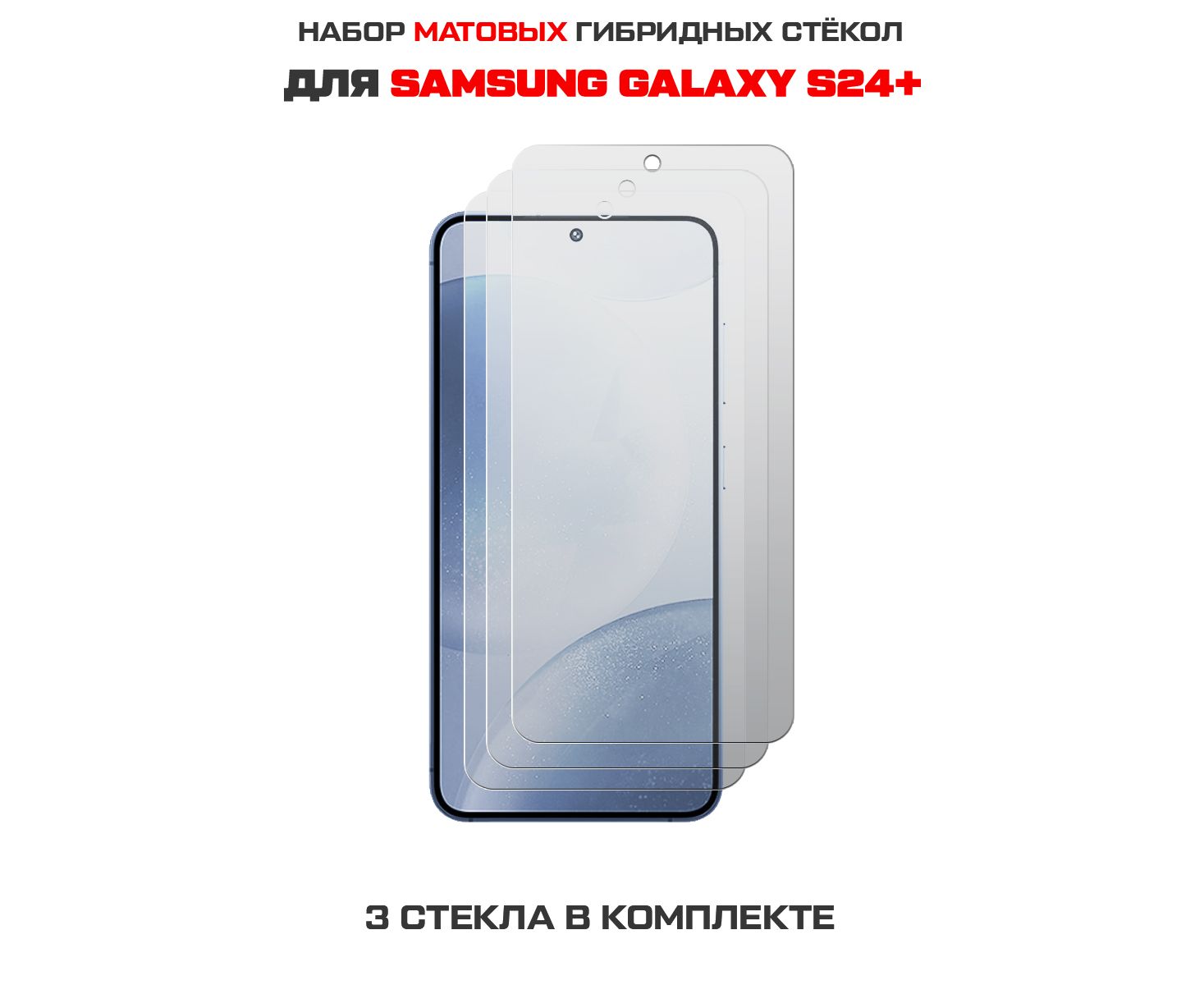 Комплект из 3-х защитных гибридных стекол МАТОВЫХ Krutoff для Samsung Galaxy S24+