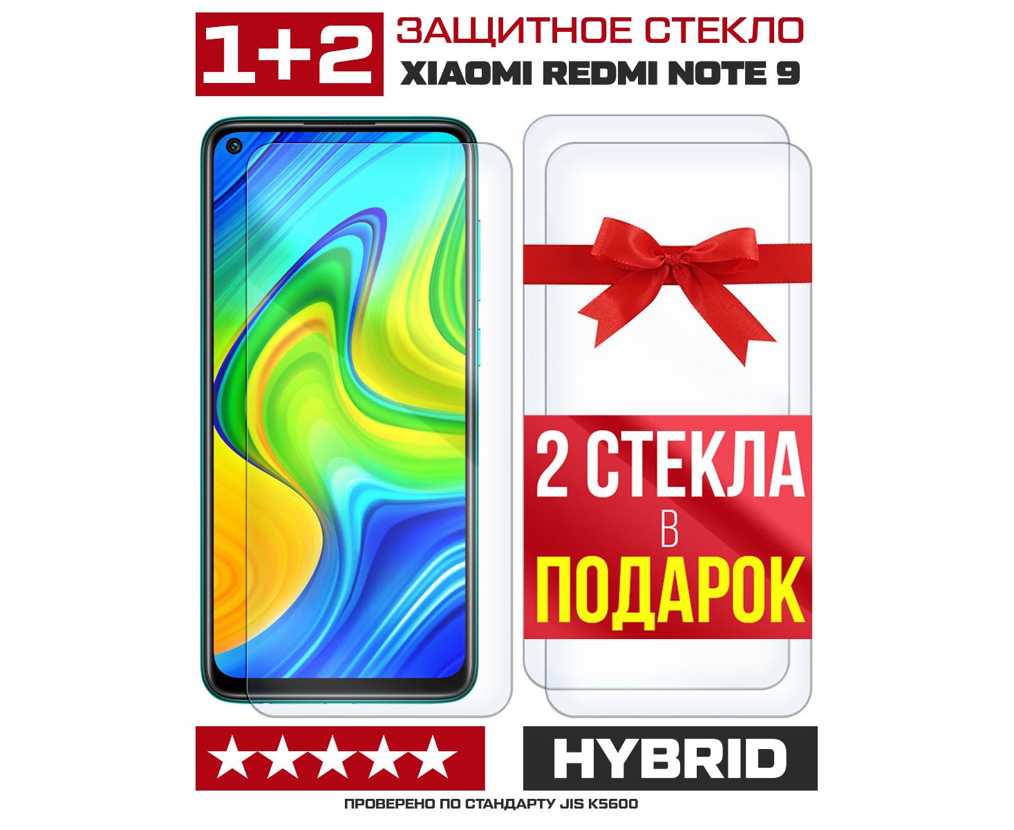 Комплект из 3-x защитных гибридных стекл для Xiaomi Redmi Note 9
