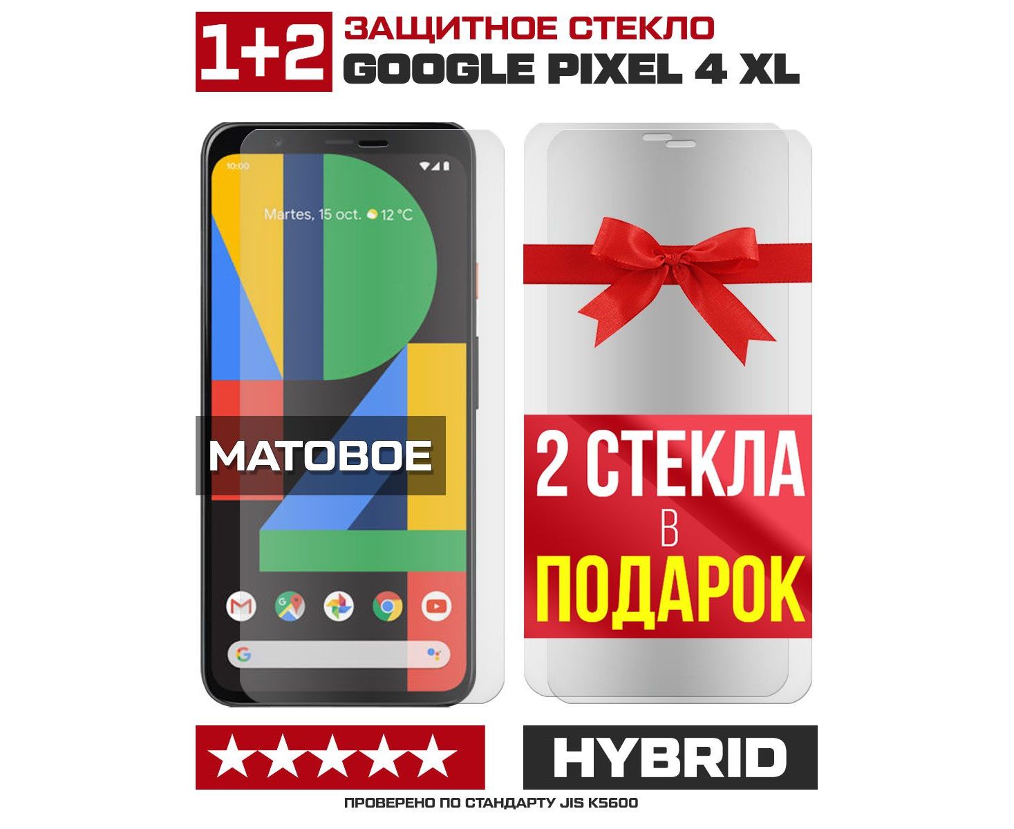 Комплект из 3-x защитных гибридных стекол МАТОВЫХ Krutoff для Google Pixel 4 XL
