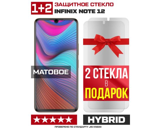 Комплект из 3-x защитных гибридных стекол МАТОВЫХ Krutoff для INFINIX Note 12