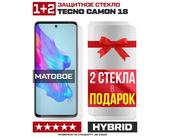 Комплект из 3-x защитных гибридных стекол МАТОВЫХ Krutoff для Tecno Camon 18