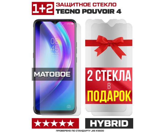 Комплект из 3-x защитных гибридных стекол МАТОВЫХ Krutoff для Tecno Pouvoir 4