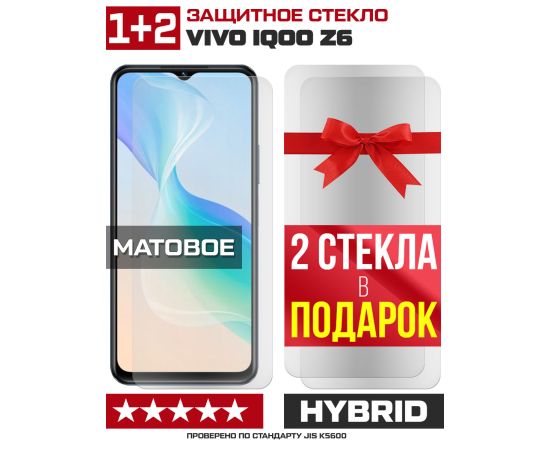 Комплект из 3-x защитных гибридных стекол МАТОВЫХ Krutoff для Vivo iQOO Z6