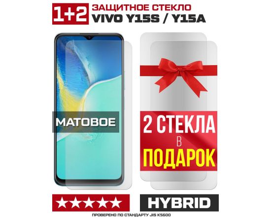 Комплект из 3-x защитных гибридных стекол МАТОВЫХ Krutoff для Vivo Y15s/Y15a