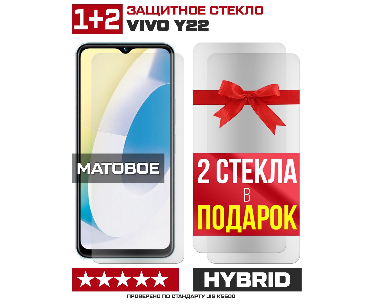 Комплект из 3-x защитных гибридных стекол МАТОВЫХ Krutoff для Vivo Y22