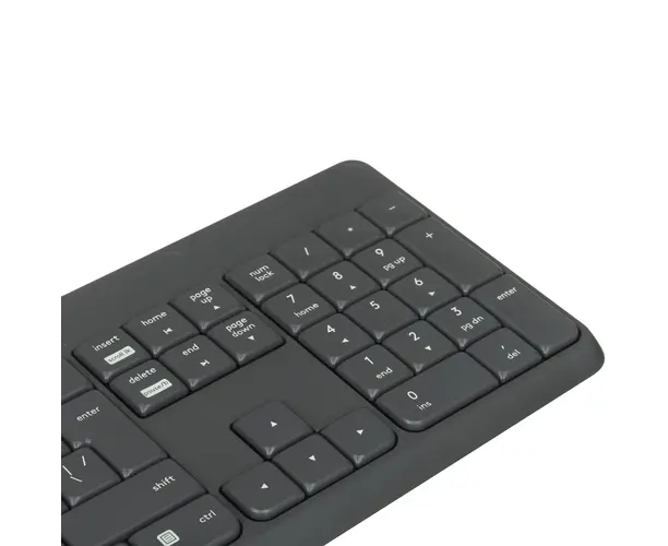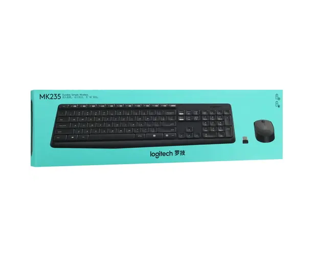 Клавиатура+мышь Logitech MK235 – комплект из двух устройств, ориентированных для использования с офисными и домашними ПК. Мембранная клавиатура с полноразмерной раскладкой и низкопрофильными клавишами обеспечивает высокую точность распознавания нажатий. Поставляемая в наборе оптическая светодиодная мышь с сенсором 1000 dpi гарантирует быстрое позиционирование курсора и плавность перемещения. Подключение Logitech MK235 выполняется посредством компактного USB-ресивера. В качестве элементов питания применяются батарейки типоразмера АА/ААА.