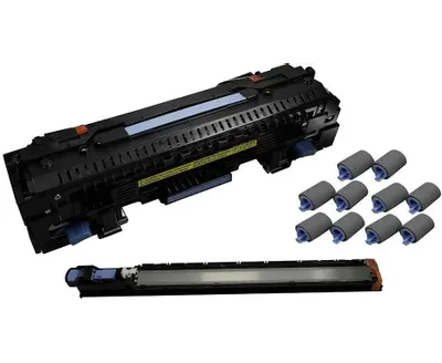 В состав ремкомплекта входят следующие компоненты: печка в сборе CF367-67906, вал переноса в сборе CF367-67907, ролики подачи/отделения, лотки 2, 3 RF5-3338-000 - 4 шт., ролики захвата, лотки 2, 3 RF5-3340-000 - 2 шт., ролики подачи/отделения, лотки 4, 5 RM1-0037-000 - 4 шт.