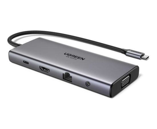 Конвертер UGREEN CM639 (45520) 11-in-1 4K 60Hz 2xUSB-C 3.2+USB-A 3.2+USB-A 3.0+HDMI+VGA+RJ45 Gigabit+SD/TF+AUX3.5mm+PD Converter серый
