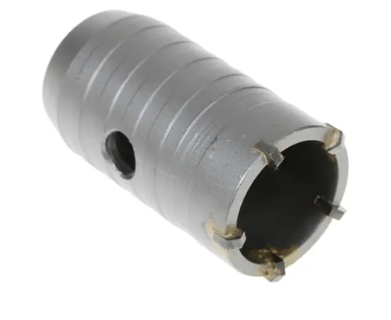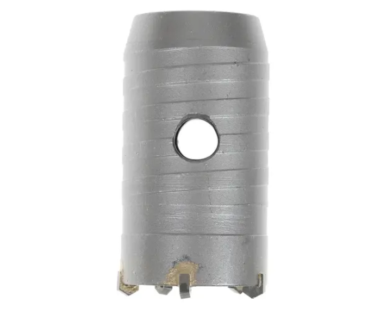 Буровая коронка производится из стали с повышенным содержанием углерода. Благодаря этому изделие отличается исключительной прочностью и отлично выдерживает механические нагрузки при эксплуатации. На коронку дополнительно установлены твердосплавные зубья из стали ВК8. За счет этого она прекрасно вгрызается в материалы, а элементы долго не теряют первоначальную остроту.