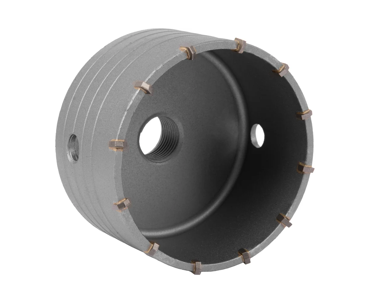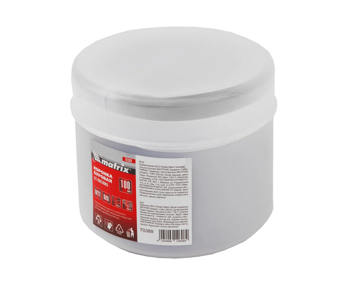 Буровая коронка Matrix 70389, M22 х 100 мм, рассчитана на сверление отверстий в бетоне, кирпиче, граните, природном и искусственном камне. Она устанавливается в качестве оснастки на ударные дрели или перфораторы, оснащенные хвостовиками SDS-Plus или SDS-Max. Коронка позволяет получить большие отверстия, поэтому пригодится при проведении бытовых ремонтных работ для монтажа розеток, выключателей и прокладки труб.
