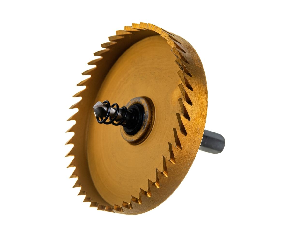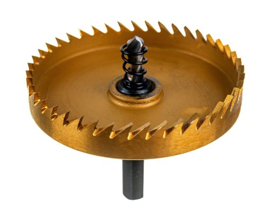 Коронка биметаллическая 76 мм с зубьями из быстрорежущей стали Р6М5. Обладает высоким ресурсом и позволяет сделать ровный и точный рез. Предназначена для резки тонколистового металла (сталь, нержавеющая сталь).