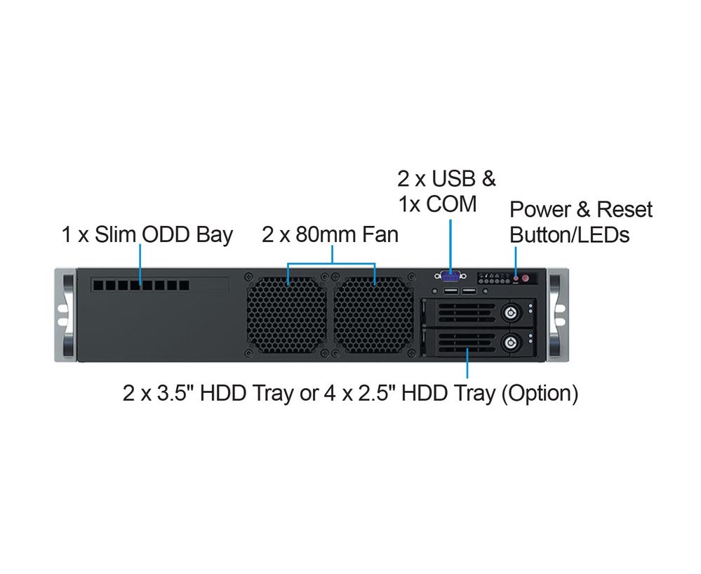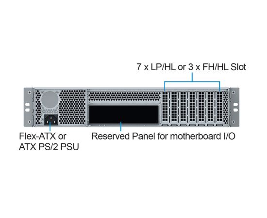 Корпус Ablecom CS-R27S-05P 2U chassis, ATX, Micro-ATX, Mini-ITX MBs, 2 x 3.5''hs + 3.5'' internal 1 2.5'' flex 500W, no rails
