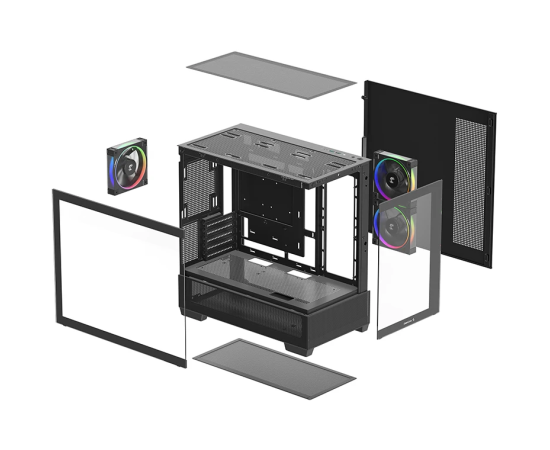 Корпус Deepcool CG380 3F без БП, боковое окно (панорама), 3x120mm ARGB PWM вентилятора, черный, mATX