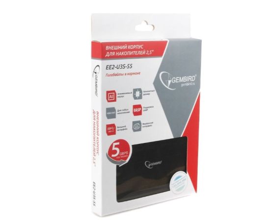 Корпус для HDD Gembird EE2-U3S-55, чёрный, 2.5", USB 3.0, SATA, алюминий